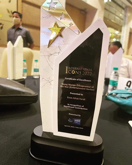 Producer and Social Activist Ms. Eram Faridi was been awadded for International Icons Awards,2022. It was held in Delhi at Radisson Blu, Dwarka 29th April,2022. It was a great honor and pride for Eram Faridi to be nominated for such a respectable award.